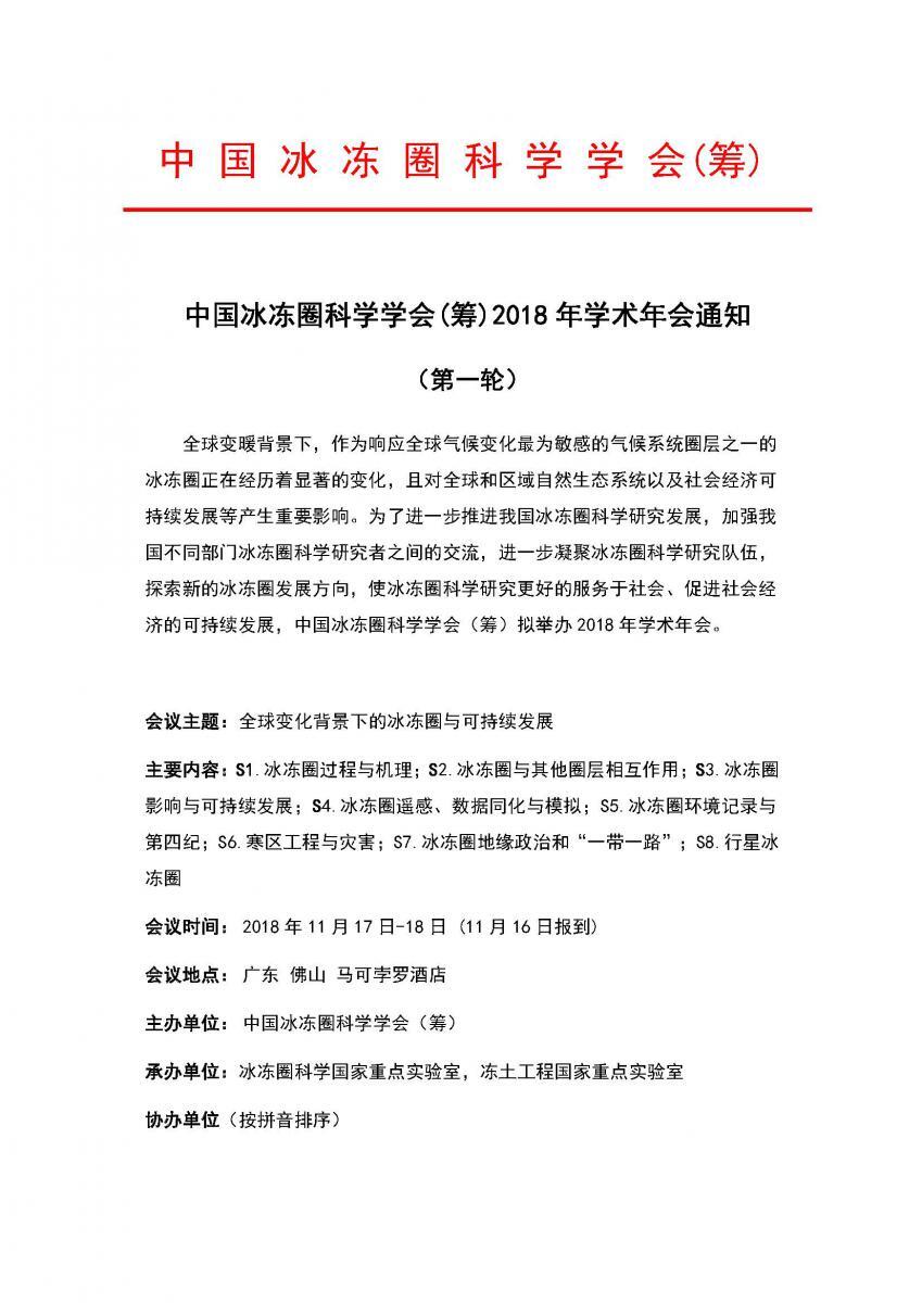 详情参见:中国冰冻圈科学学会(筹)2018年学术年会通知(第一轮).pdf