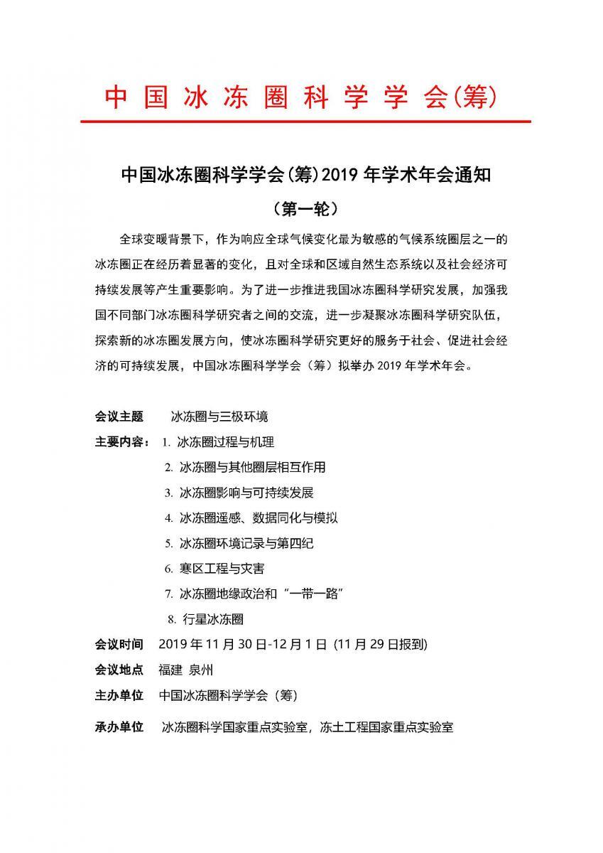 详情参见:中国冰冻圈科学学会(筹)2019年学术年会通知(第一轮).pdf