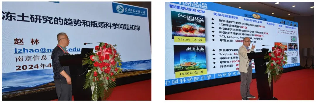 大会主会场报告下半场,秦大河院士、齐吉琳教授、吴相利教授分别作“发展冰冻圈科学”、“基于经典土力学原理的寒区岩土工程研究”、“冰天雪地—金山银山”的特邀报告,报告环节由朱占元教授、丁琳教授主持。