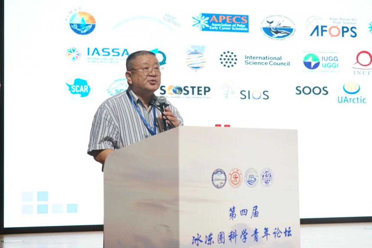 中国气象局原局长、中国科学院院士秦大河,国家海洋局极地考察办公室原主任秦为稼,中国科学院成都山地灾害与环境研究所所长康世昌,北京师范大学地表过程与水土风沙灾害风险防控全国重点实验室主任效存德,中国科学院西北生态环境资源研究院副院长李宗省,藏北高原冰冻圈特殊环境与灾害国家野外科学观测研究站前站长、南京信息工程大学赵林,冰冻圈科学学会青年工作委员会主任、中国科学院青藏高原研究所张强弓,中国极地研究中心副主任魏福海,自然资源部第二海洋研究所科技处处长白雁,上海交通大学科学技术发展研究院院长周永丰,海洋学院院长周朦、党委书记李巍、副院长王风平、周磊,以及来自各兄弟高校、科研机构共计200余位专家学者和学生参会。本次论坛围绕主题“冰冻圈快速变化与应对”,设大会主旨报告、专题分会场和研究生论坛,共组织120余场报告。