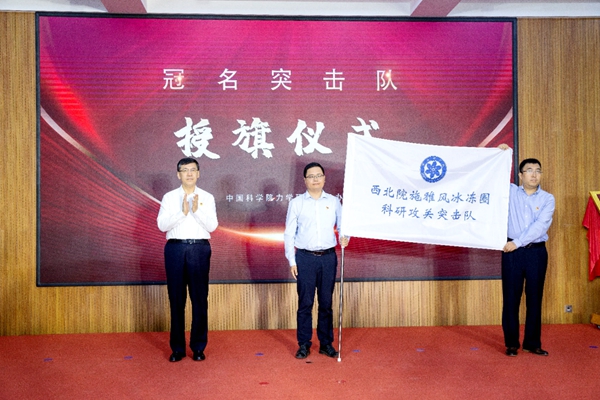 阴和俊向施雅风冰冻圈科研攻关突击队授旗