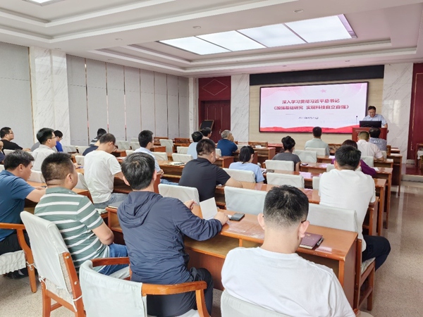 会上,西北研究院副院长张明义作了《深入学习贯彻习近平总书记<加强基础研究,实现高水平科技自立自强>》专题党课报告。报告指出,我们要不断加强基础研究,从源头和底层解决关键技术问题,突出原创,鼓励自由探索和部署,不断加强基础研究人才队伍建设,打造高层次基础研究人才培养平台,将基础研究工作切实落实到位,实现高水平科技自立自强。