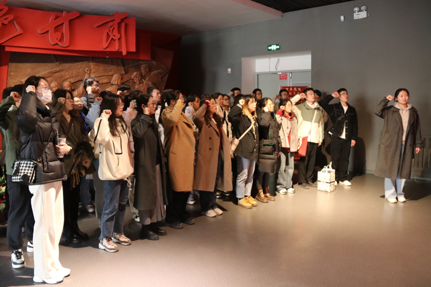 大家首先来到《红色甘肃——走向1949》展厅,在党旗下,全体党员重温入党誓词。大家心怀敬意,庄严宣誓,再次发出了为共产主义奋斗终生的铮铮誓言。铿锵有力的誓词在心头激荡,声声洪亮的誓言久久回响,昭示着党员对党忠诚的决心,表达着新时代共产党人的信念与理想。