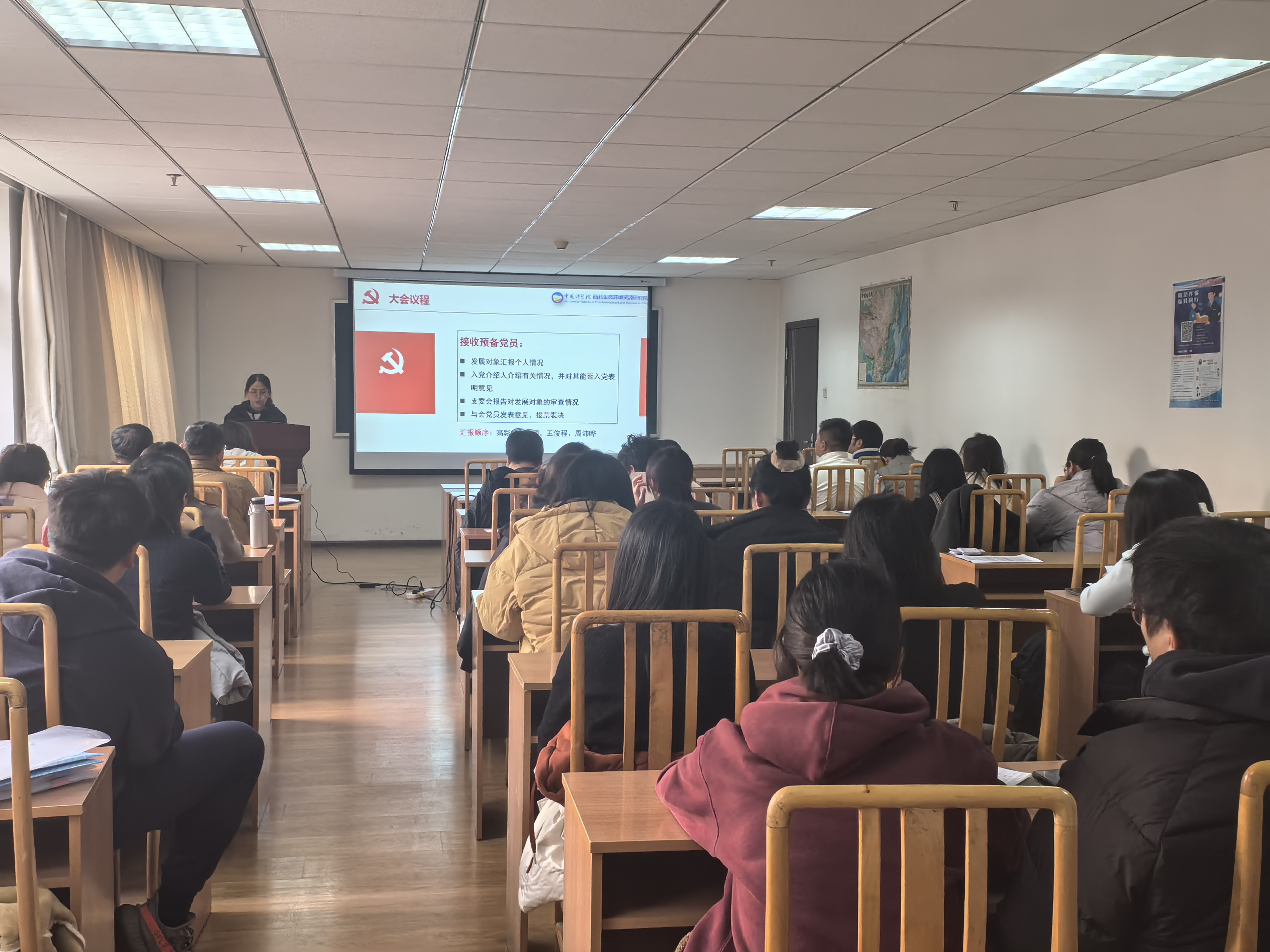 12月18日,中国科学院西北生态环境资源研究院研究生第一党支部召开党员大会暨“安保进党支部”主题党日活动。西北研究院办公室副主任、安保办主任陈治理应邀参会并作专题宣讲,支部全体党员参加会议。会议由党支部书记宋芳萍主持。