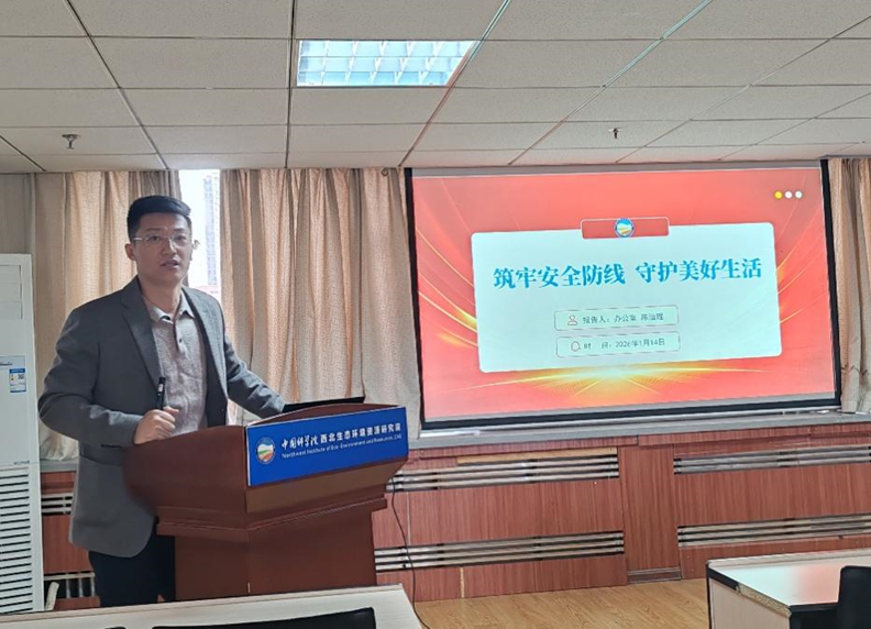 1月14日,研究生第五党支部召开党员大会暨“传承弘扬红船精神与科学家精神”“安保走进党支部”主题党日活动。西北研究院党委办公室主任陈云峰、办公室副主任兼安保办主任陈治理应邀参会并作专题报告。会议由党支部书记曹占元主持。