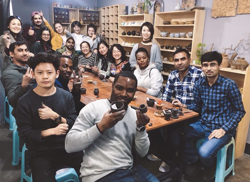留学生们学习了解了的中国陶瓷文化,并在专业老师的指导下,亲自动手,完成了自己的陶器作品。最后,留学生们体验了中国书法艺术。