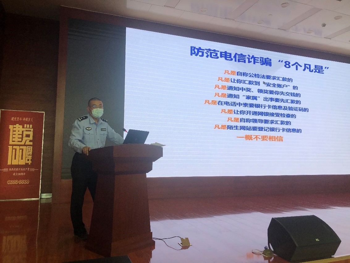 入院教育活动还邀请了辖区民警张晟警官作了防电信诈骗的宣传,邀请甘肃五进防火知识宣传中心的马文杰教官作了消防安全的宣传,通过发放宣传册、示范安装“国家反诈中心”APP等形式提醒新生提高安全意识、防范意识。
