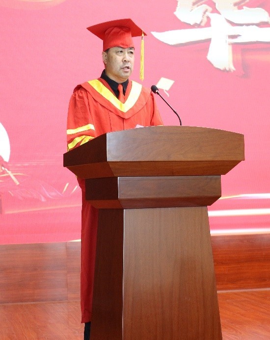 毕业典礼在庄严的国歌声中拉开了帷幕。首先,冯起宣读了2021年学位拟授予决定并致辞,他向毕业生顺利完成研究生阶段的学业表示了热烈地祝贺,同时希望毕业生要始终牢记习近平总书记“率先建成国家创新人才高地”的殷切嘱托,争当高素质技术技能人才、能工巧匠、大国工匠。他对毕业生提出三点期望,一是希望毕业生能够树立终身学习的理想。二是面对未来满怀信心。三是面对社会要有责任感和使命感,把奉献社会作为不懈的追求,在民族复兴的伟大事业中创造出无愧于时代的业绩,成就无悔的人生。