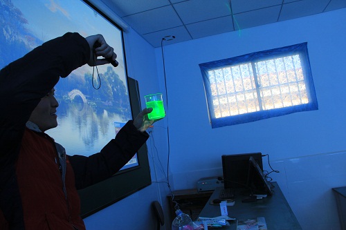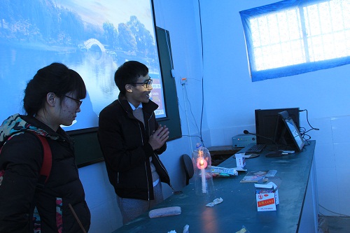 西北研究院的学生代表为山区孩子们放映了科学教育片,表演了节目,还带领他们做了科学小实验。孩子们对哥哥姐姐们展示的内容表现出浓厚的兴趣,并且进行了积极地参与和互动,气氛十分热烈。