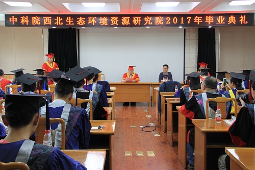 中国科学院西北生态环境资源研究院(筹)(以下简称“西北研究院”)2017年研究生毕业典礼于6月9日在科研3号楼7楼会议室隆重举行。党委书记、副院长谢铭,学位评定委员会主席、常务副院长赖远明院士,副院长冯起研究员,油气中心主任夏燕青研究员,学位评定委员会委员代表,导师代表及2017届毕业生近百人齐聚一堂见证庄严的时刻。会议由冯起副院长主持。