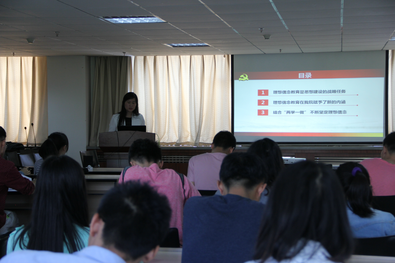 专题党课上,陈辉书记紧扣主题,从坚定理想信念的重要性、理想信念教育在我院赋予的新涵义以及如何坚定理想信念三个方面,加深了对理想和共产主义信念的理解和认识,陈辉书记说:坚持理想信念,就要深入学习。理论上清醒,政治上才能坚定。