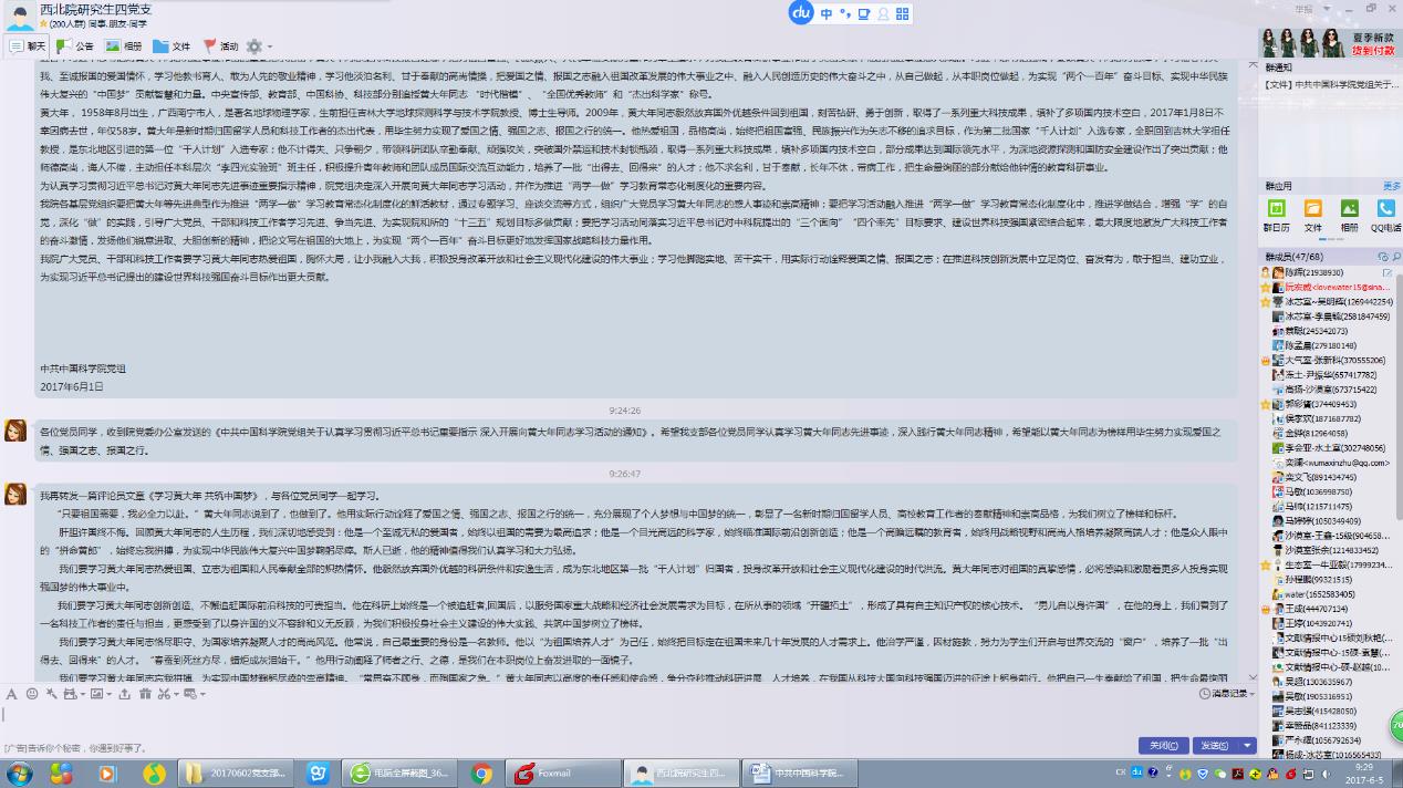 QQ群宣传并学习黄大年同志先进事迹