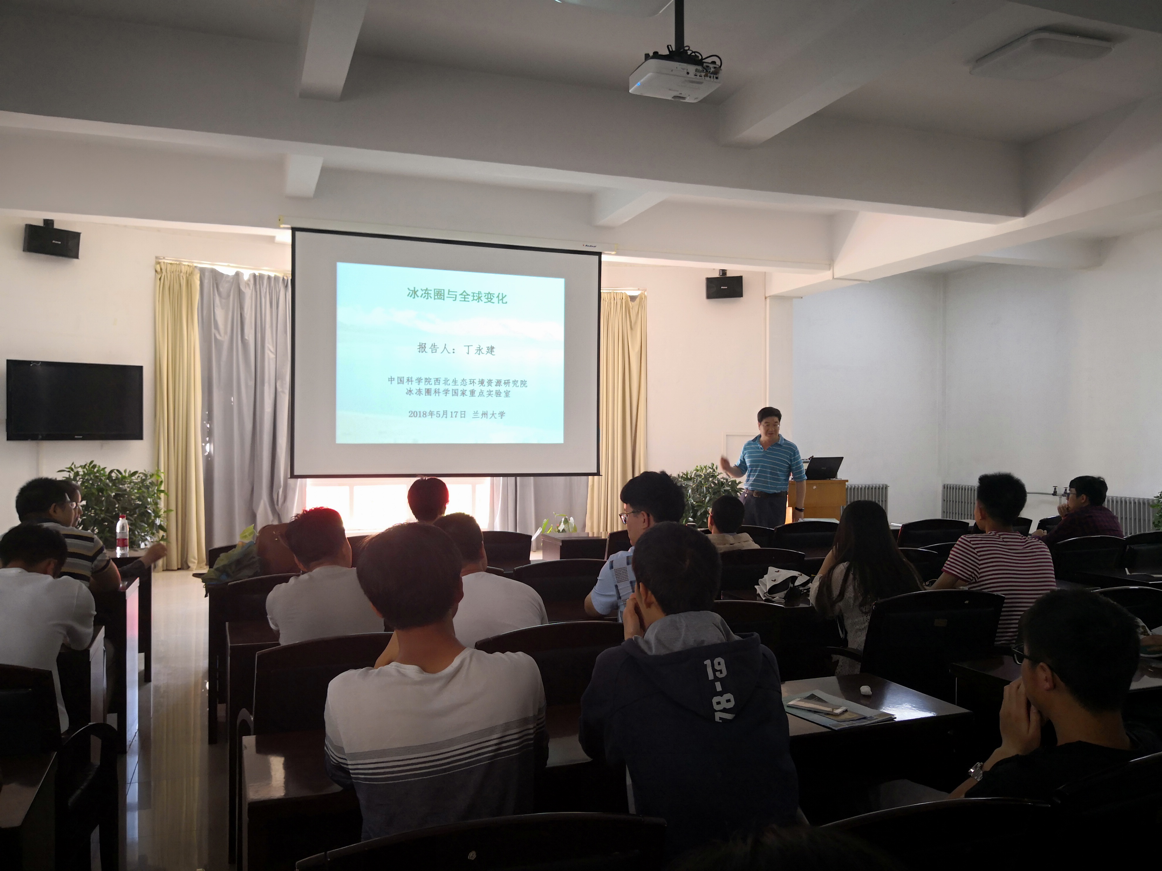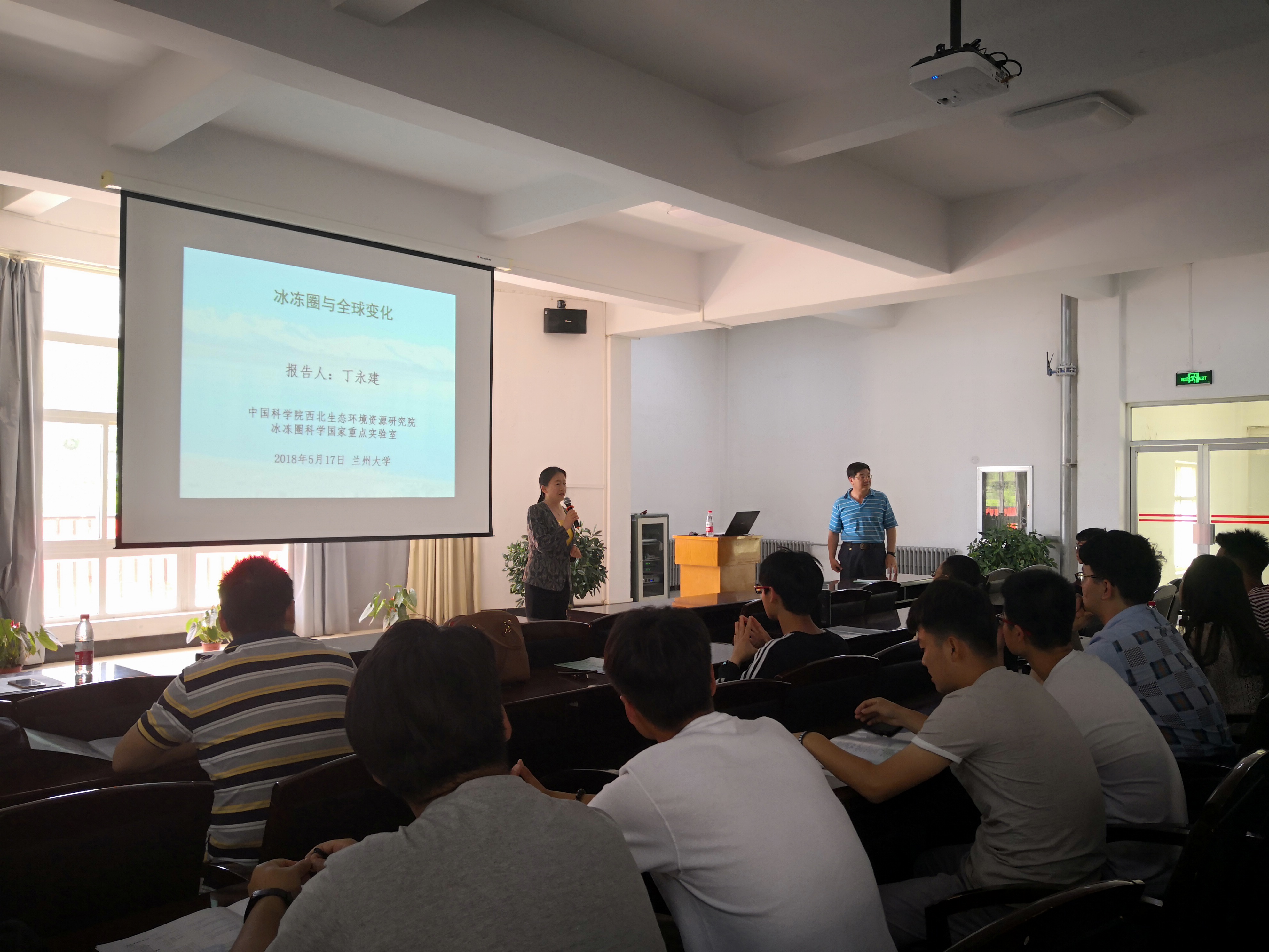近日,中国科学院西北生态环境资源研究院(简称西北研究院)国家重大科学研究计划项目首席科学家丁永建研究员应邀在“兰州大学-中国科学院学术周”中做了题为“冰冻圈与全球变化”的学术讲座,兰州大学资源环境学院院长、党委副书记勾晓华教授主持本次报告会。