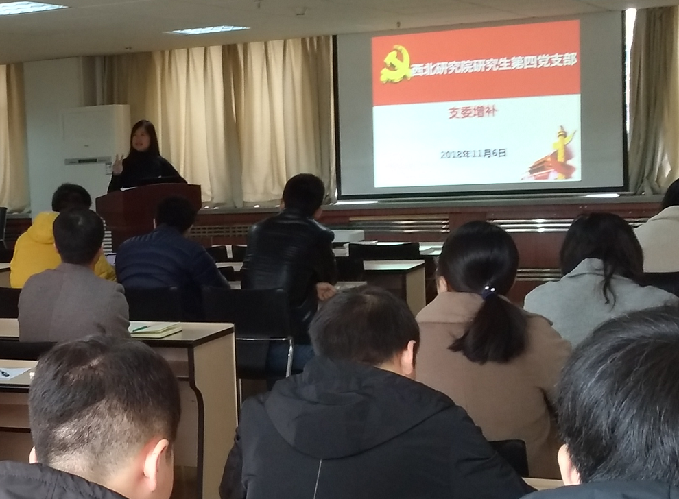 首先,在征得上级党委同意后,研究生第四党支部进行了支委的增补,经充分酝酿和讨论后、支部大会全体参会正式党员无记名投票方式,选举吴刚同志和肖瑶同志为支委,并报上级党委审批。