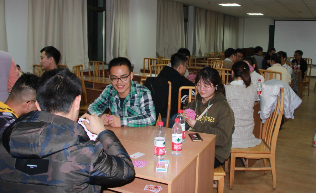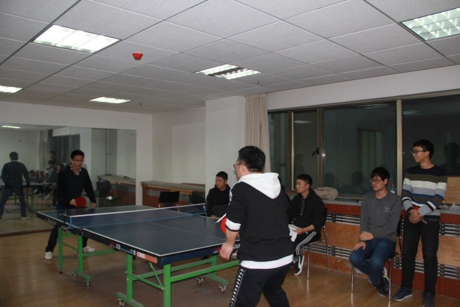 强身健体,发扬勇于拼搏的竞技精神,晚上18:30趣味乒乓球比赛在科研6号楼三楼乒乓球室如火如荼的进行。参赛选手精神饱满,不惧对手,比赛场面扣人心弦。男单,女单冠军分别由黄旭斌,王丽莎夺得。比赛现场掌声雷鸣,此起彼伏。同时,双扣比赛在科研6号楼316教室如期举行。赛场上参赛选手热情高涨,整个比赛过程充满了欢乐的气氛。最终该项目由牛改红、马茜茜一组夺得第一名。