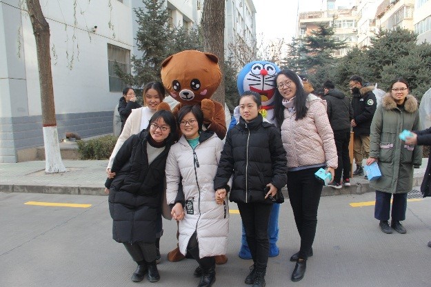 首先,“爱的抱抱”活动由两名工作人员身着玩偶服,给路过的同学送去爱的拥抱,并在现场合影留念。希望同学们能够感受到科研生活之外的轻松与和谐,多一份包容和温暖。