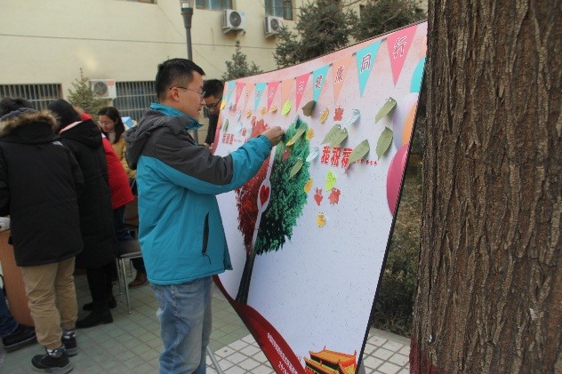 在“2020,我来啦”环节中,活动展板以大树的形象设置“感恩墙”和“祝福墙”,参与的同学可在“叶子”便签上写下2019年对自己、家人、朋友及西北研究院的感恩和对即将来临的2020年的祝福。写下一份祝福,消除一份烦恼,回忆一份美好;将不快留在2019,以健康的心态迎接2020。
