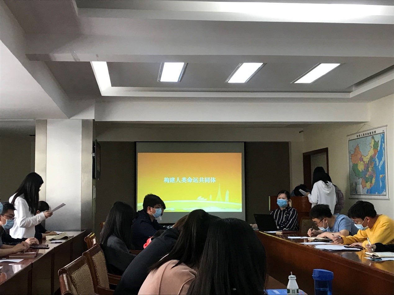 接着,结合主题,支部书记陈辉作了题为《构建人类命运共同体》的党课。党课结合新冠肺炎疫情防控工作和当前的国际政治局势,强调构建人类命运共同体重要战略思想,是习近平总书记着眼人类发展和世界前途提出的中国理念、中国方案,受到国际社会的高度评价和热烈响应。在目前的全球抗疫战疫中,“人类命运共同体”理念的时代性已得到充分彰显,未来,人类更需要携手探索后疫情时代新型全球化背景下的共处与发展之道。