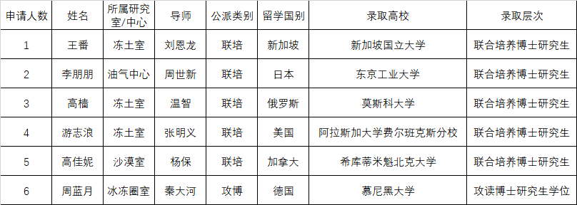 西北研究院6名同学获2020年国家建设高水平大学公派研究生项目资助