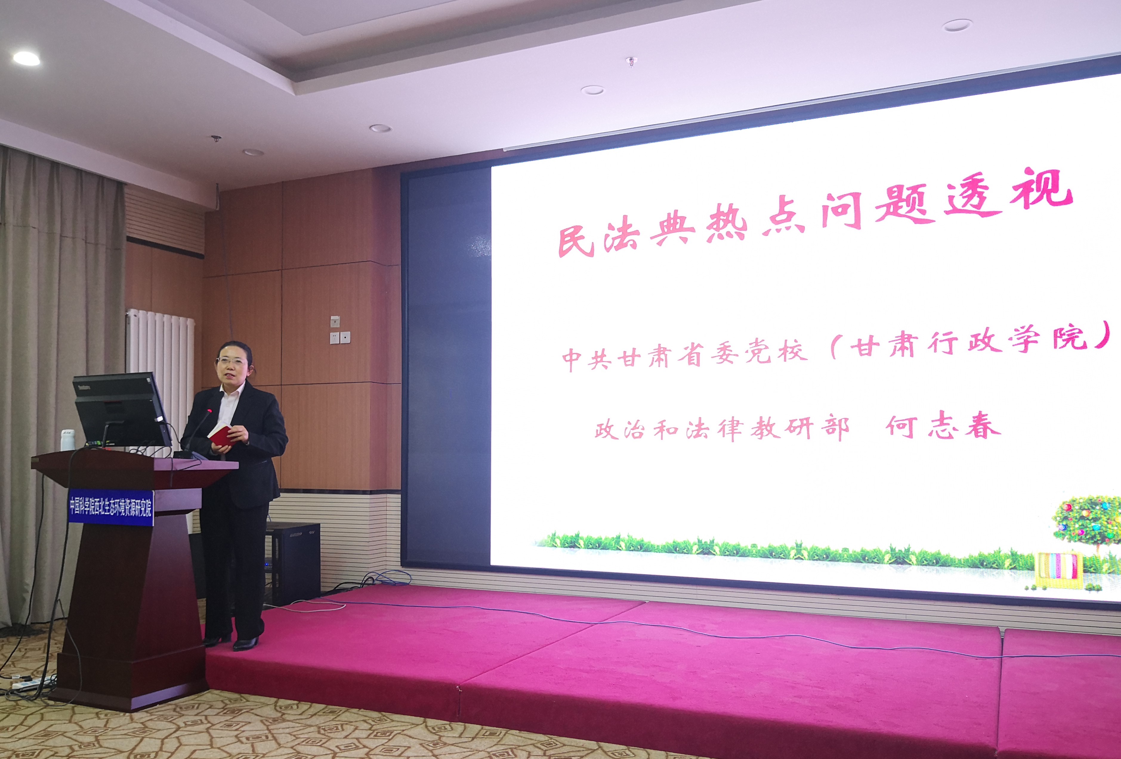 为提升学生的法律意识,普及学生的法律知识,维护自身的合法利益,2021年5月19日下午,中国科学院西北生态环境资源研究院(以下简称为西北研究院)研究生部在文献情报中心会议室开设了“民法典热点问题透视”的讲座。讲座邀请了甘肃省委党校何志春教授,向与会的师生传达了物权编、合同编、人格权编、婚姻家庭编、侵权责任编等一系列民法典的热点问题,让大家对这本社会生活百科全书有了更加全面和清晰的认识。本次讲座由研究生部刘晓东副主任主持。