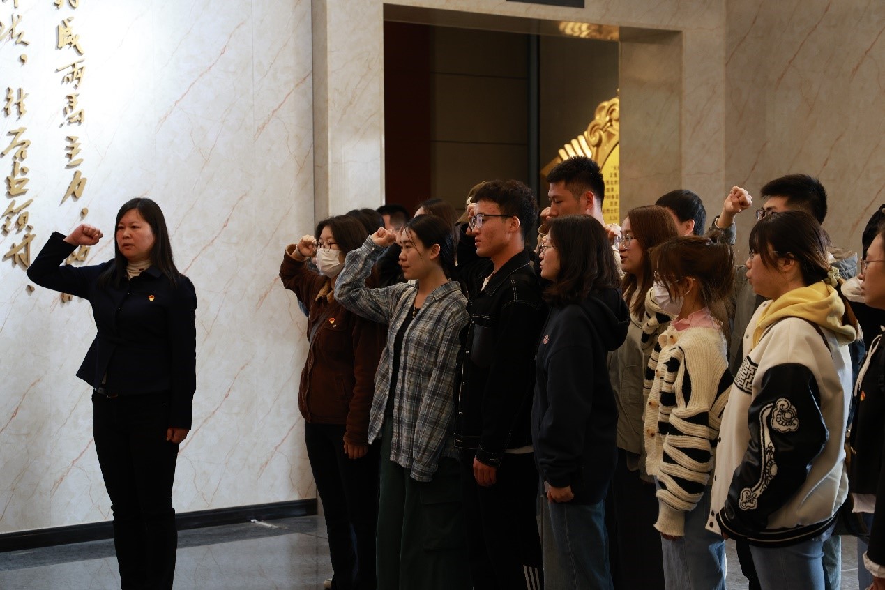 在兰州战役纪念馆,全体党员右手握拳,重温入党誓词,用铿锵有力的誓言表达了同学们敢于责任担当的决心,不忘初心、不忘承诺。随后,党员们怀着崇敬的心情参观了兰州战役纪念馆和红星照耀中国馆。