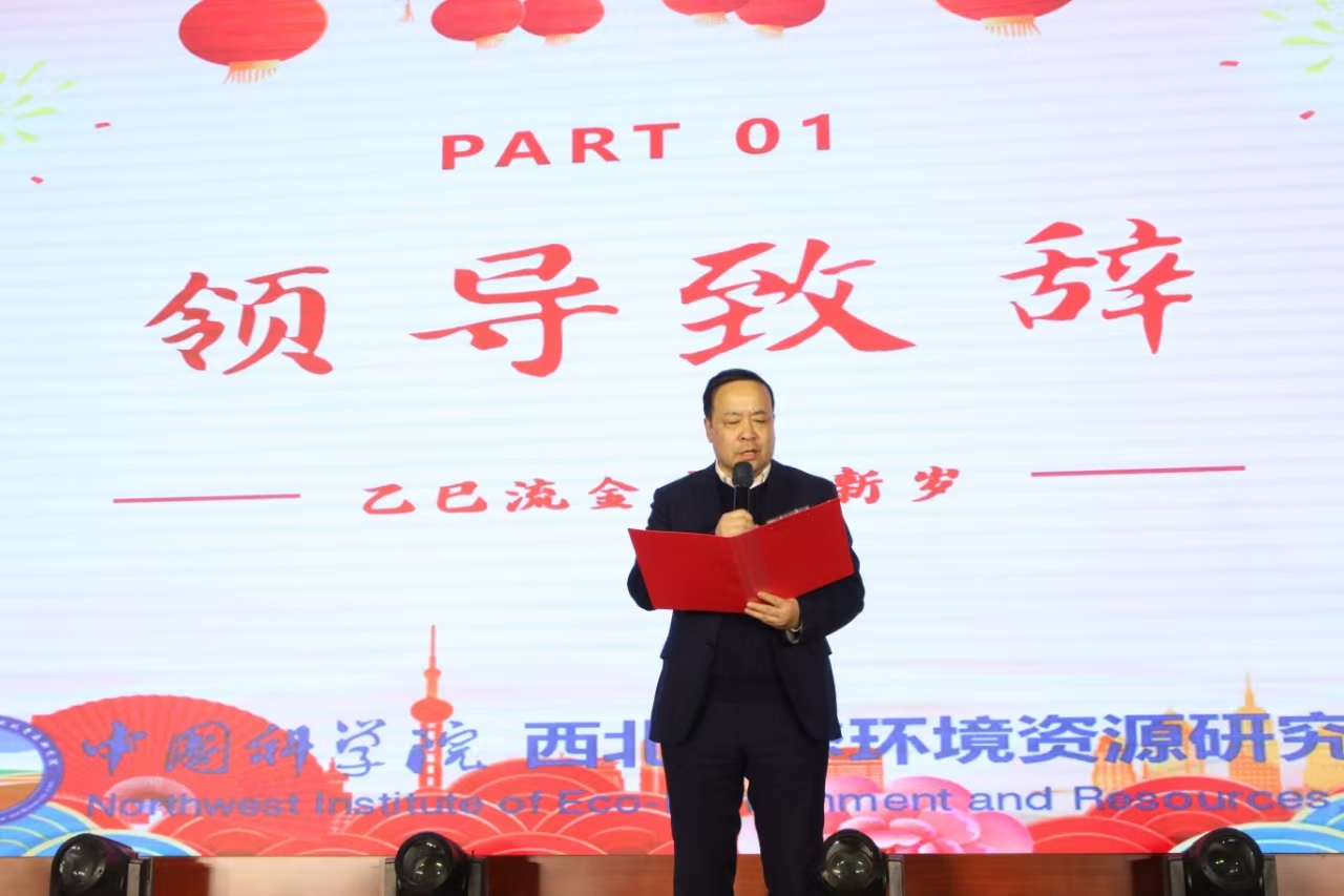 12月31日下午,中国科学院西北生态环境资源研究院于科研七号楼举办“乙巳流金 盛景新岁”2025年研究生新年联欢会。西北研究院院长冯起,党委书记、副院长张长春,副院长康世昌,副院长张明义,纪委书记袁小华以及各研究室(中心)、职能部门负责人出席了本次联欢会。