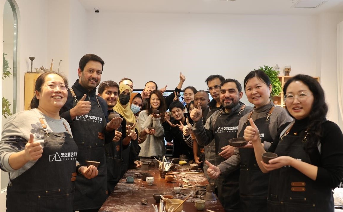 近四个小时的体验课结束后,留学生们捧着自己的作品合影留念。巴基斯坦国留学生Maliha说:“陶艺和中国书画课程太棒了,非常难忘且富有创意”。