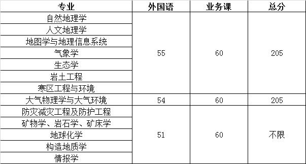 “少数民族高层次骨干人才计划” :少数民族考生入学考试外语初试成绩不低于50分,各门业务课初试成绩不低于60分,初试总分不低于225分。汉族骨干计划考生,入学考试外语初试成绩不低于55分,各门业务课初试成绩不低于60分,初试总分不低于230分。
