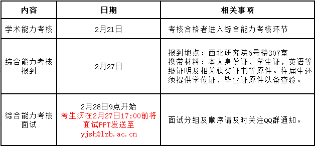 1.提前批次考核,分为学术能力考核和综合能力考核。