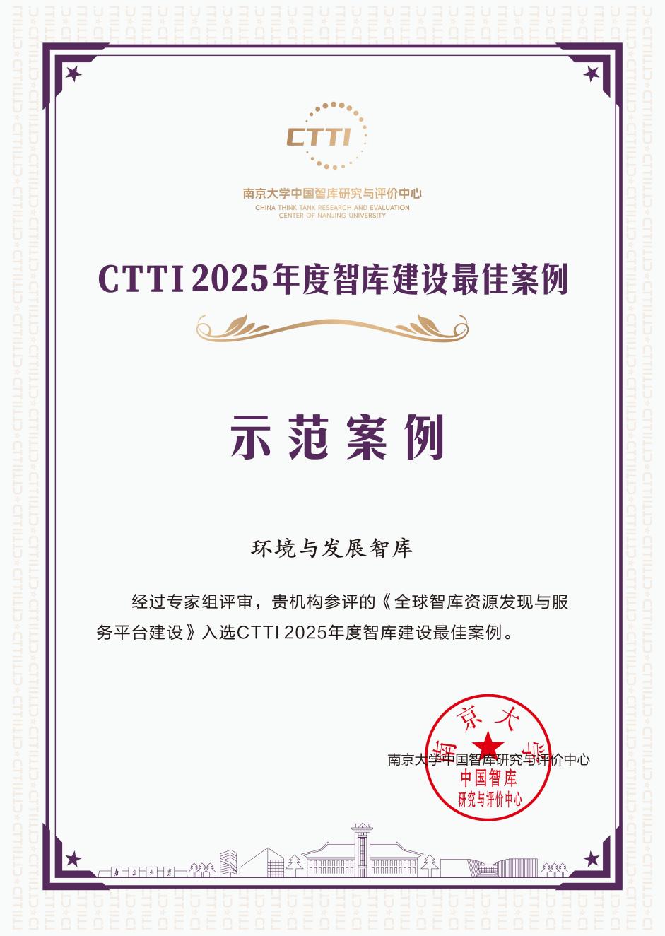 下一步,环境与发展智库将以此次入选为契机,持续依托CTTI平台资源优势,深化全球智库资源挖掘与服务升级,聚焦生态环境保护、资源合理利用、区域协调发展等核心领域,在高质量成果产出、高水平决策咨询、高效能资源服务等方面持续发力,为推动我国新型智库建设与生态环境治理现代化贡献更大力量。