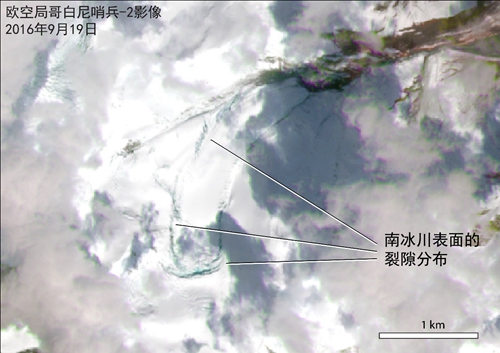 分析2016年9月21日得到的9月19日哨兵-2卫星拍摄的影像以及更早时期的多源卫星数据,该国际合作研究团队科学家们发现南冰川表面裂隙显著扩张,他们十分担心南冰川也会出现类似的冰川跃动灾害。利用冰崩计算机模型,快速识别南冰川潜在崩塌范围。由GAPHAZ协调,他们迅速通知中国同事,并通过中国同事通知当地政府。阿里地区和日土县政府高度重视,迅速通知临近地区牧民采取避险措施,经核查,证实南冰川于9月21日发生跃动和冰体崩塌,产生了类似于7月17日北冰川跃动相当规模的冰崩范围。幸运的是,在第二次冰崩事件没有带来人受伤亡和牲畜损失。