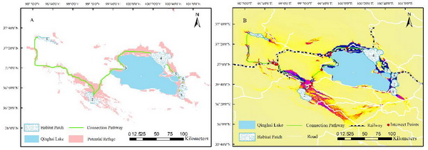 城镇化快速发展、自然资源过度利用等人类活动干扰导致物种的适宜生存空间日益破碎化,将其分割成面积狭小且相对孤立的斑块,从而限制了物种的扩散迁移,阻碍了群体间的基因交流,降低了物种应对自然环境变化和威胁因素的抵御能力,对物种生存构成严重威胁。因此,加强景观连通性是物种和栖息地保护的重要途径之一。普氏原羚(Procapra Przewalskii)是青海湖流域的旗舰物种,上世纪六十年代以前,曾广泛分布于内蒙古、甘肃、宁夏、新疆和青海等省(区),仅青海湖地区数量就达上万只。然而,随着社会进步,经济发展,人口增加,草原开发以及气候不断变化,普氏原羚的栖息地受到严重挤压而不断缩小,并在除青海湖之外的其它分布区完全消失,种群数量也急剧下降。至上世纪九十年代,普氏原羚种群数量已不足300只,普氏原羚成为比大熊猫还濒危的有蹄类动物。目前,经过近30年的保护,普氏原羚种群数量有了恢复性增长,但其栖息地破碎化和孤岛化导致的基因交流受阻、种群增长空间不足等问题依旧存在,不断增长的基础设施依然严重阻碍了该物种在几个斑块间的自由扩散。