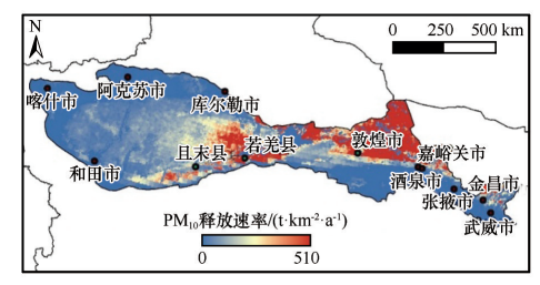 图2 2000—2023年研究区多年平均PM10释放速率空间分布