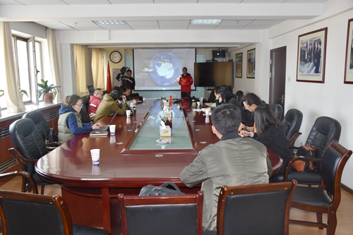 见面会上,康世昌结合视频、照片等第一手资料,就南极科考途中生活及工作情况向媒体记者们作了精彩报告。他深情讲述了在亲历冰丘密集区、冰裂隙密集区和强烈的暴风雪与“白化天”时的所见所感,介绍了在浅冰芯钻取、表层雪及雪坑采样等方面开展的科学考察工作。还就媒体记者们关注的问题及感兴趣的话题作了细致解答。