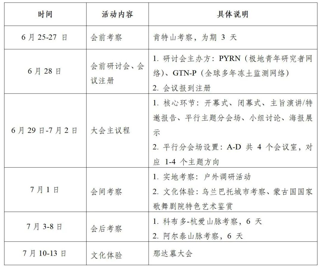 打造高水平的跨学科交流平台,汇聚全球科研、工程与产业界同仁,分享多年冻土科学的前沿成果、创新理念与实践经验。通过主题演讲、小组讨论、学术报告和实践研讨会,聚焦多年冻土变化、气候-多年冻土-生态系统相互作用、多年冻土区基础设施韧性、碳反馈以及寒区可持续发展等议题,为相关领域研究人员、研究生、工程师与政策制定者提供分享科研成果、建立合作、深化认知的交流平台。